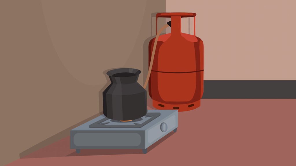 He helps the family understand the health and environmental benefits of switching to cleaner LPG gas.